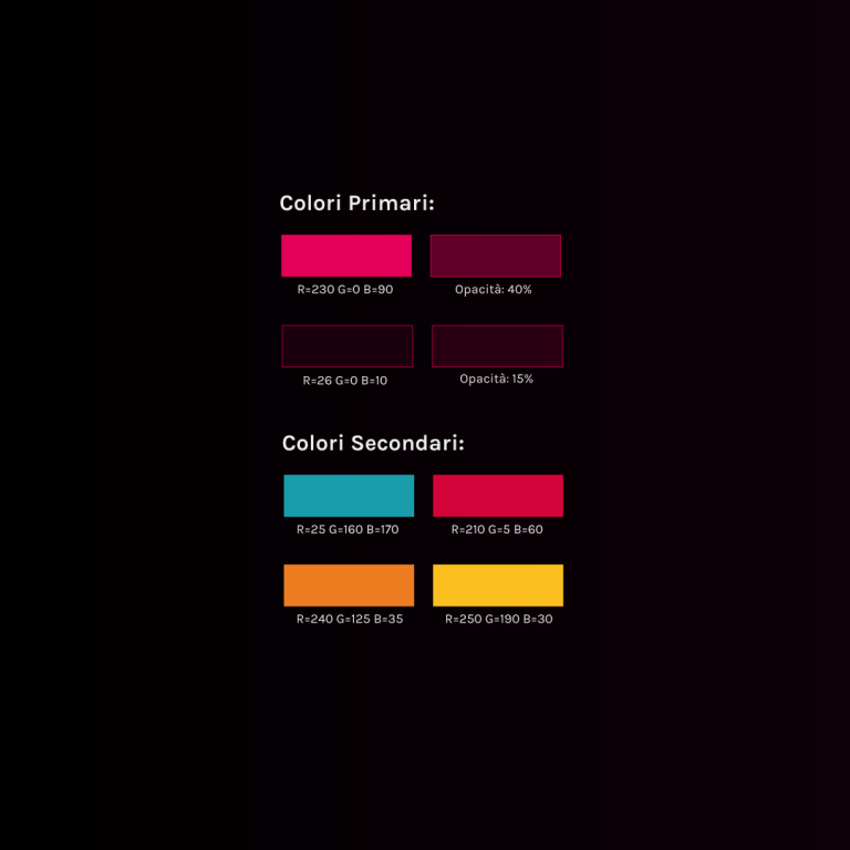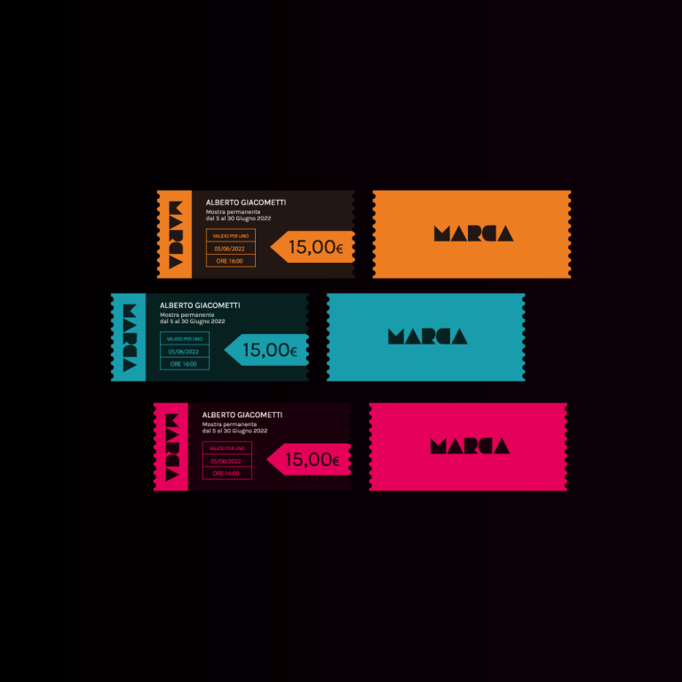 A partire dal marchio, ho sviluppato un’intera linea comunicativa fondata su contrasti cromatici decisi e combinazioni dinamiche, pensate per adattarsi a mostre, eventi e campagne stagionali. Il colore diventa strumento narrativo, capace di differenziare le esposizioni mantenendo una struttura visiva coerente.