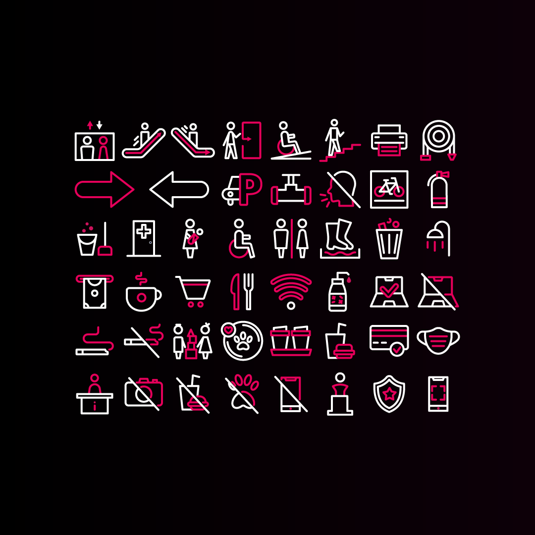Particolare attenzione è stata dedicata al sistema di icone e alla grafica wayfinder, progettati per garantire chiarezza, accessibilità e coerenza visiva all’interno degli spazi museali. Le icone, sviluppate con uno stile lineare e contemporaneo, dialogano con la palette cromatica istituzionale rafforzando l’identità complessiva.